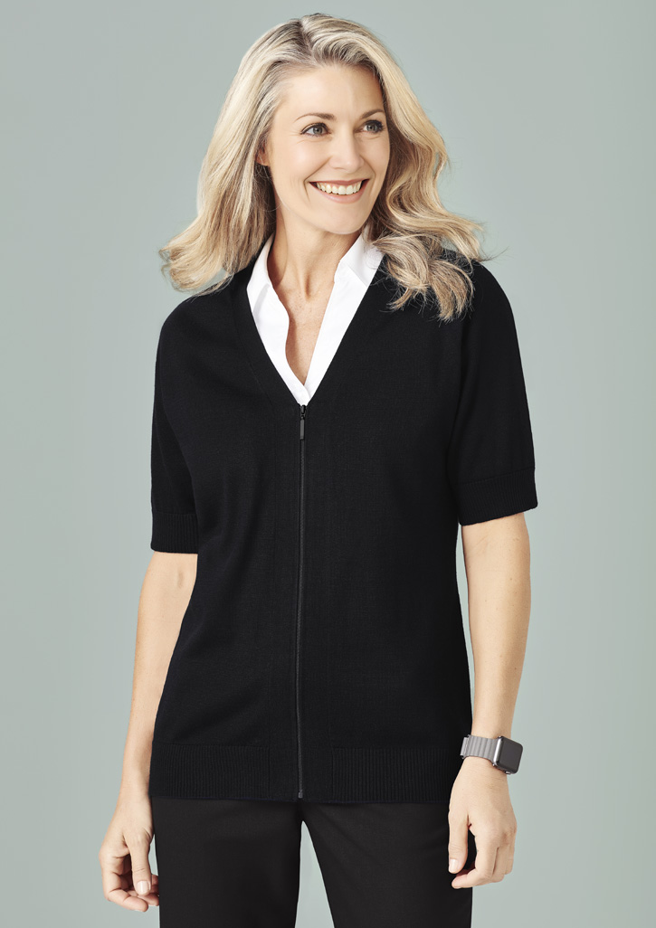 Womens Zip Front Short Sleeve Knit Cardigan is a reliable workwear essential built for comfort and durability on the job.